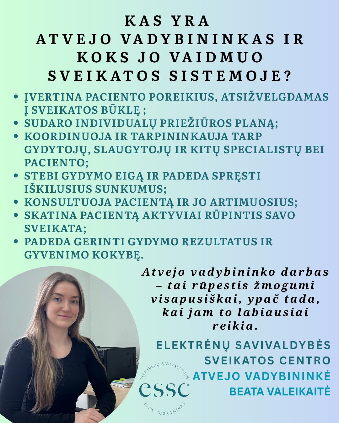 Elektrėnų savivaldybės sveikatos centre jau kurį laiką su pacientais dirba atvejo vadybininkė Beata