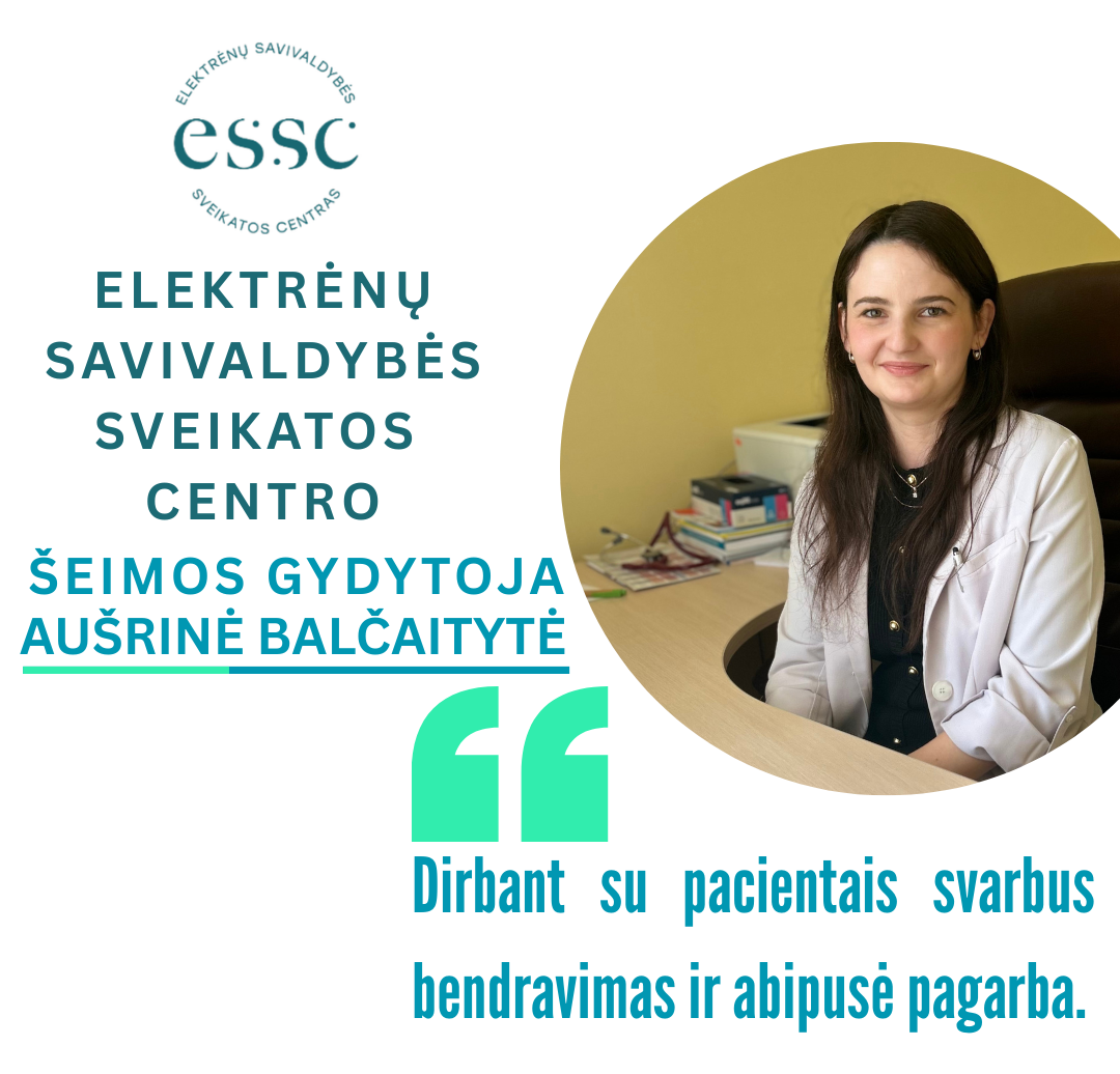 Elektrėnų savivaldybės sveikatos centre dirbantys gydytojai – tai žmonės, kurie kasdien rūpinasi pacientų sveikata ir gerove, sukaupę daugybę profesinių patirčių bei istorijų. Apie savo darbą, motyvaciją, vertybes ir tai, kas įkvepia kasdienėje gydytojo praktikoje, pasakoja gydytoja Aušrinė Balčaitytė.