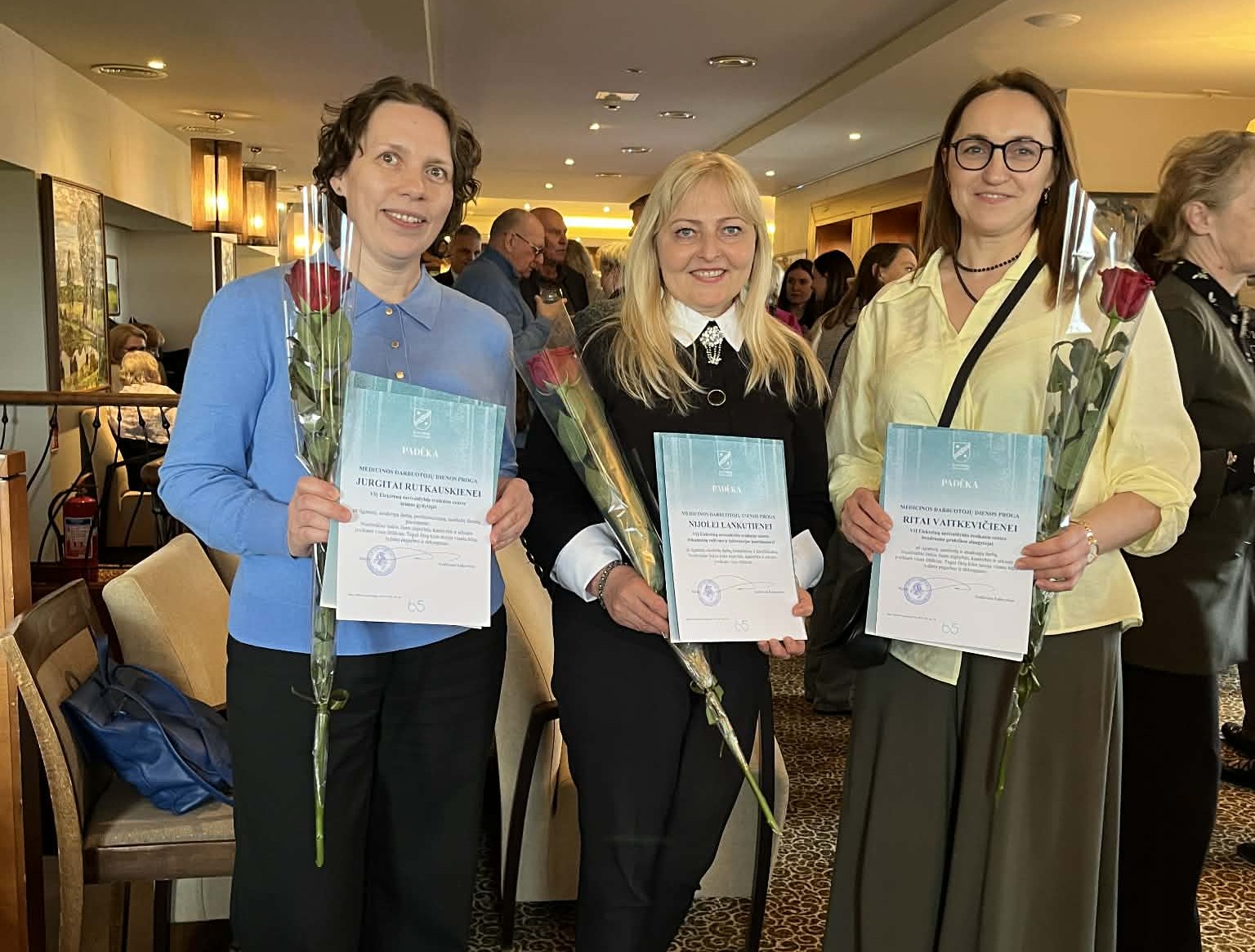 Mero padėkos raštais apdovanoti Elektrėnų savivaldybės sveikatos centro darbuotojai: šeimos gydytoja Jurgita Rutkauskienė, dokumentų valdymo ir informacijos koordinatorė Nijolė Lankutienė bei bendrosios praktikos slaugytoja Rita Vaitkevičienė.